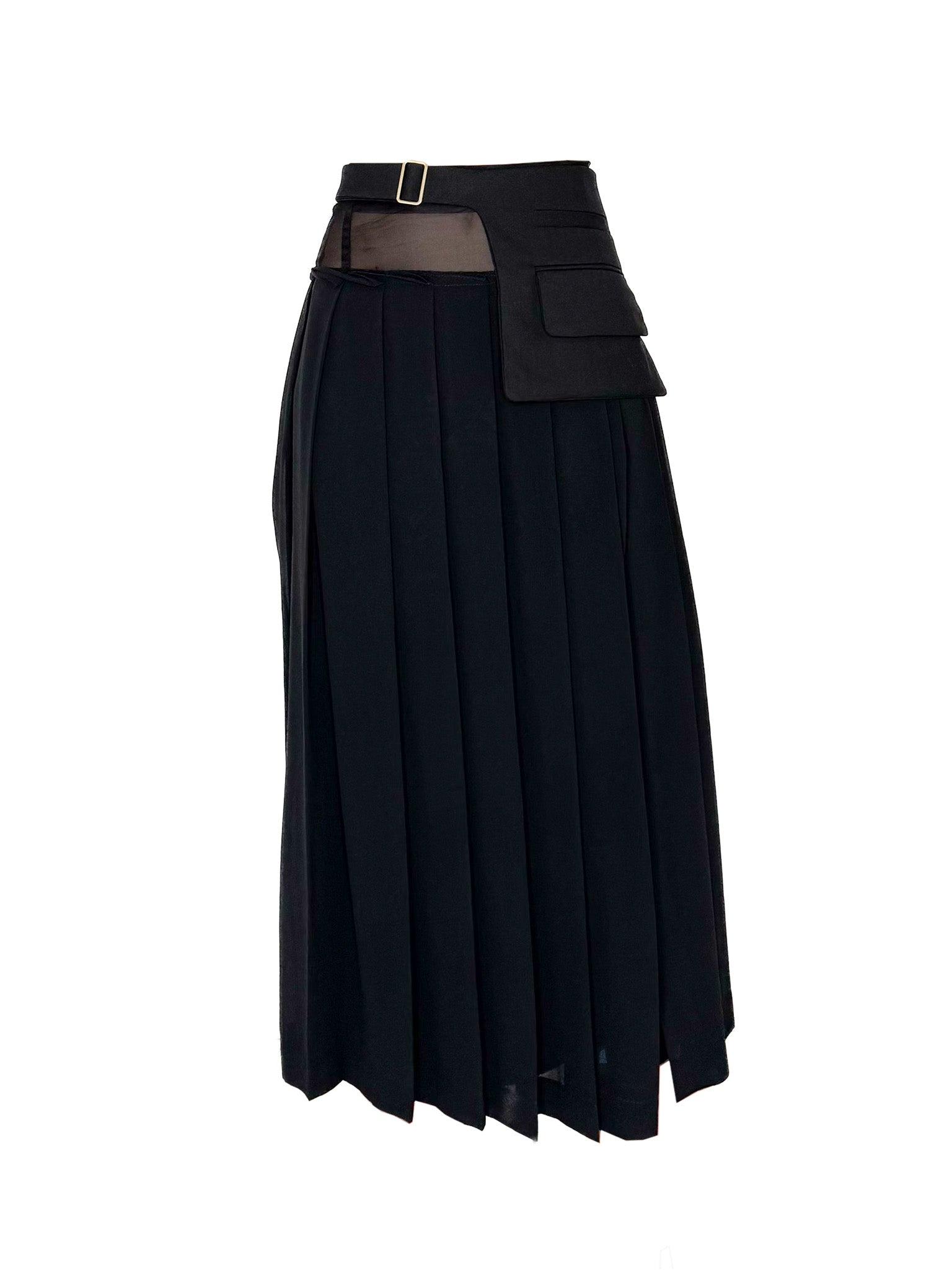 Step into refined elegance with The Noire Corset Skirt, a striking fusion of romantic tailoring and modern functionality. Crafted from luxurious silk organza, this piece is designed with a sheer corset-inspired waist, meticulously sewn with intricate French seams that flow effortlessly into handcrafted knife pleats. The result? A silhouette that is both structured and fluid, creating graceful movement with every step.